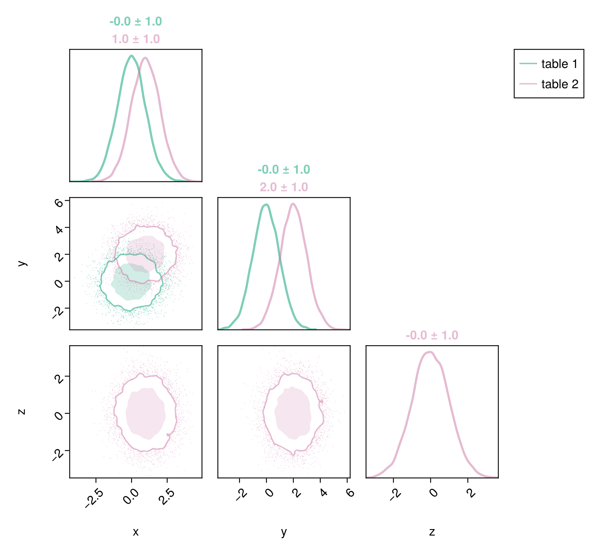 PairPlots.Series(table2, label="table 2", color=c2, strokecolor=c2),