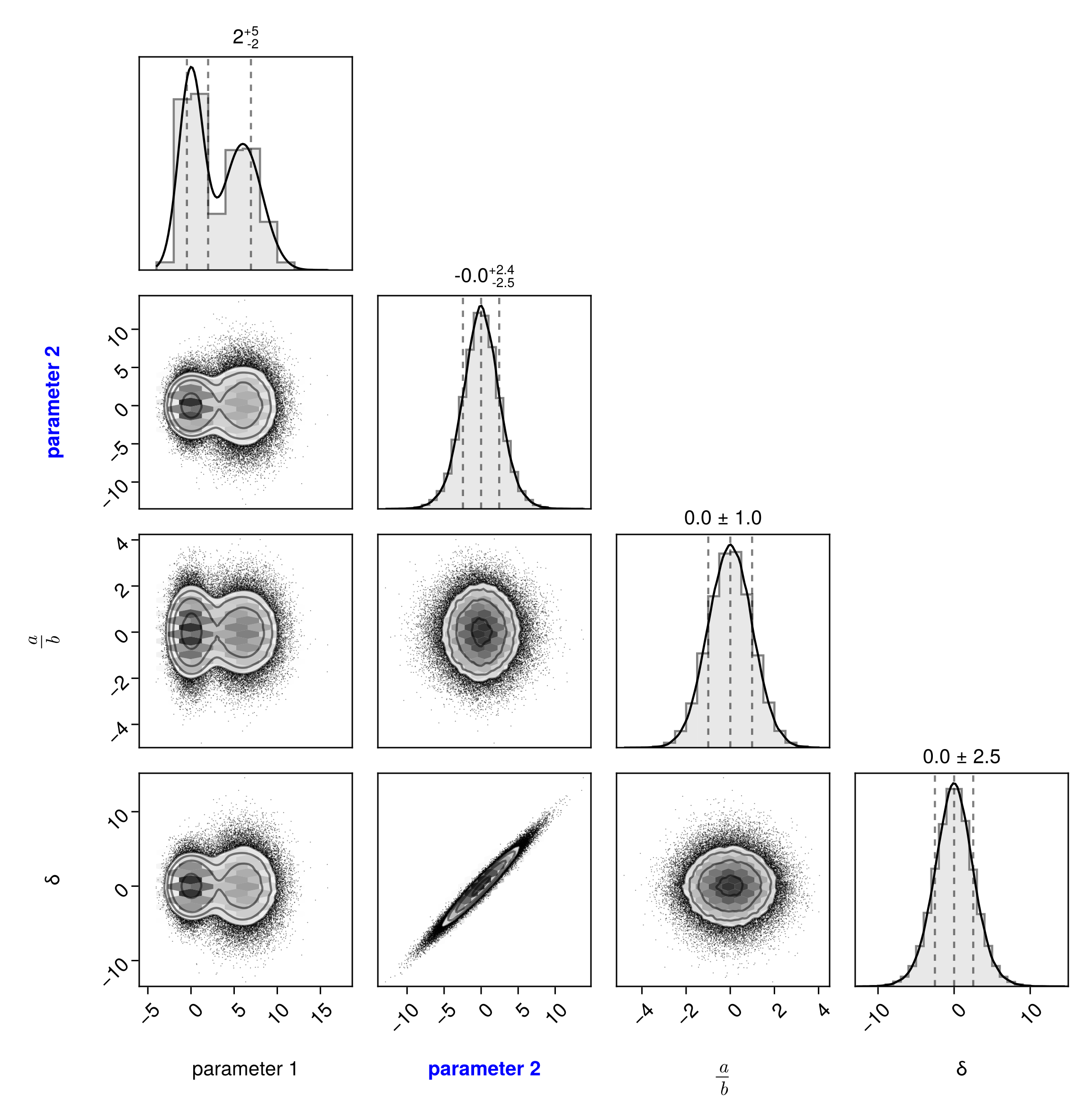 PairPlots.HexBin(colormap=Makie.cgrad([:transparent, :black])),